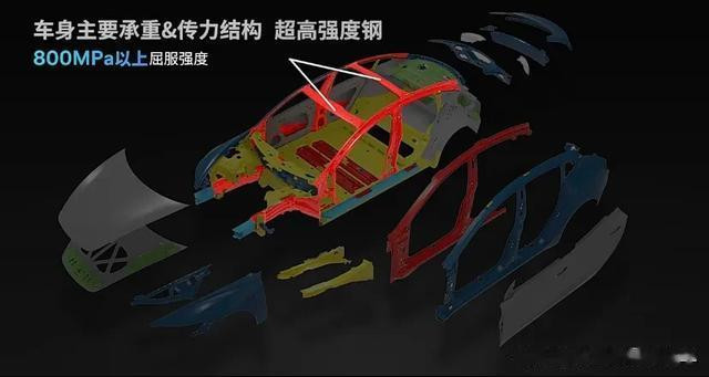 电池安全也是消费者注重的一点,特斯拉起火爆炸的风险相比于燃油车还要低出很多,主要原因就是特斯拉的地盘横梁,采用屈服强度高达1350-1700Mpa的马氏体钢,整车屈服强度最高的地方,把电池受外力挤压或地盘拖底造成电池起火的可能性降到最低,车头前部采用200-300Mpa的挤出铝,当发生正面碰撞时车头会主动变形吸能,车身侧面采用300Mpa的低碳钢重量只有普通钢的1/3,有效减轻车身重量,特斯拉做到了刚柔并济!